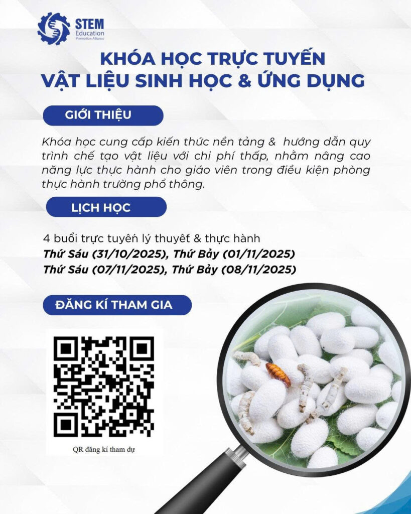 Khóa học “Vật liệu sinh học & Ứng dụng”, do Cô Đào Thị Hồng Quyên – chuyên gia hàng đầu trong lĩnh vực đào tạo giáo viên STEM – trực tiếp hướng dẫn.
